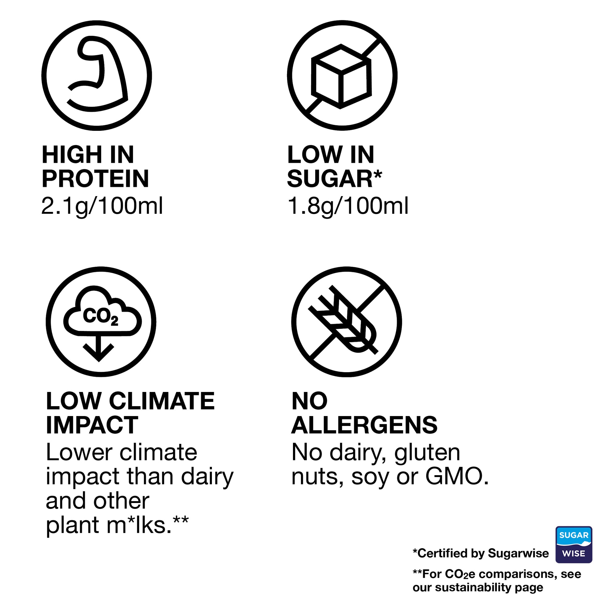 Water, erwteneiwit (2,5%), koolzaadolie, agavesiroop, zuurteregelaar (dikaliumfosfaat), calciumcarbonaat, calciumfosfaten, lecithine, zout, vitaminen [Riboflavine, Vitamine D, Vitamine B12].
