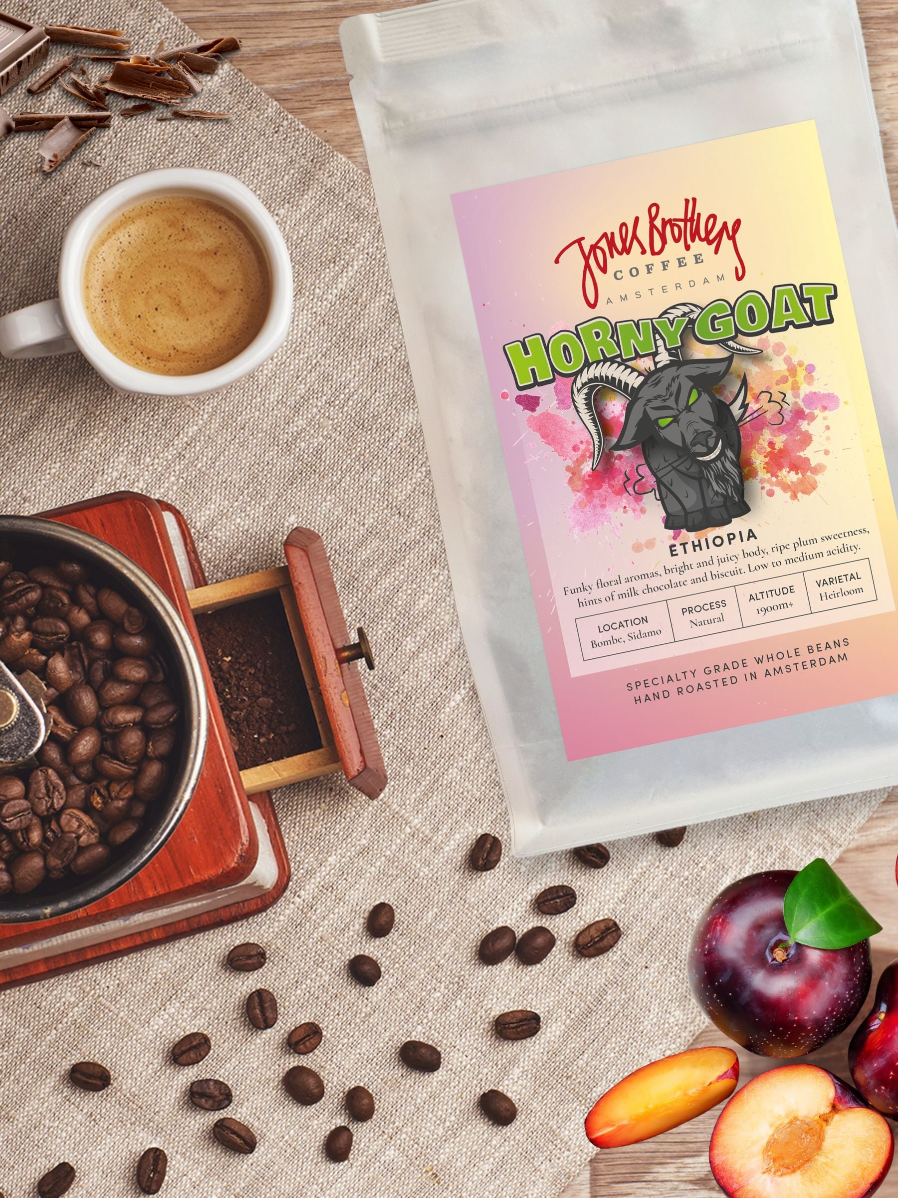 Ethiopia Horny Goat Inspired by the legend of Kaldi and his dancing goats, this Sidamo coffee is as lively as its name suggests. Naturally processed for extra depth, it bursts with juicy berry sweetness and a playful funkiness that keeps you coming back for more. It’s coffee with a wink. It is coffee happiness in full technicolour - bold and memorable. Whether you lean towards the refined charm of Rwanda or the funky energy of Ethiopia, both showcase why African coffees are loved worldwide: vibrant, complex and full of joy.